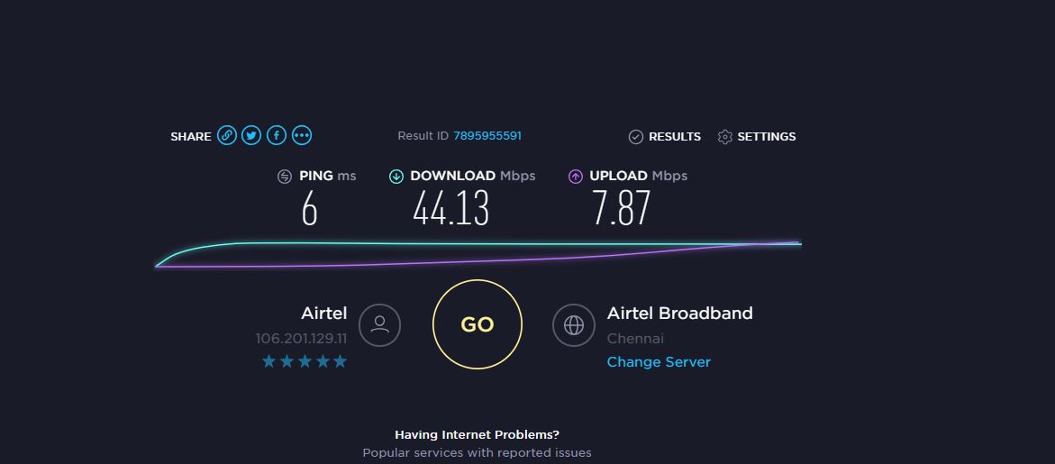 Actual Speed: 44 Mbps