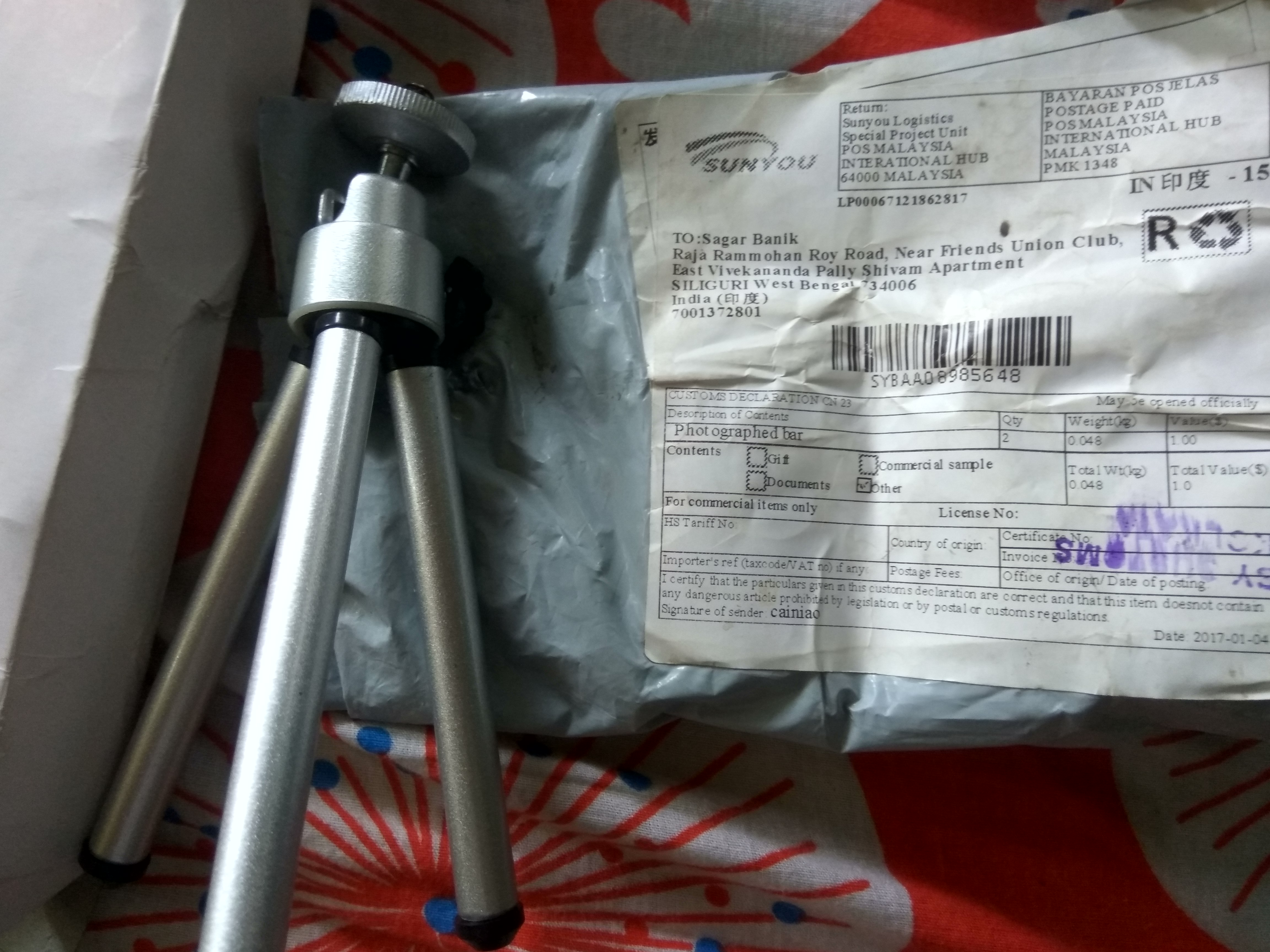AliExpress.com is the world's biggest online market for china products. I was buying many things from this website but every time I was received very poor quality product. Orginal product and pictures of products in website are not same. Their is big differences. Product prices are very cheap but product quality is very bad. I was buy a tripod, a mobile holder ane lapel coler mic but all the products are came very poor quality. They are taking delivery time more than 1 months. But delivery fees are free for many products. I am attaching a picture of my product which is buying from this website and also attaching bill of this product. Thank You.