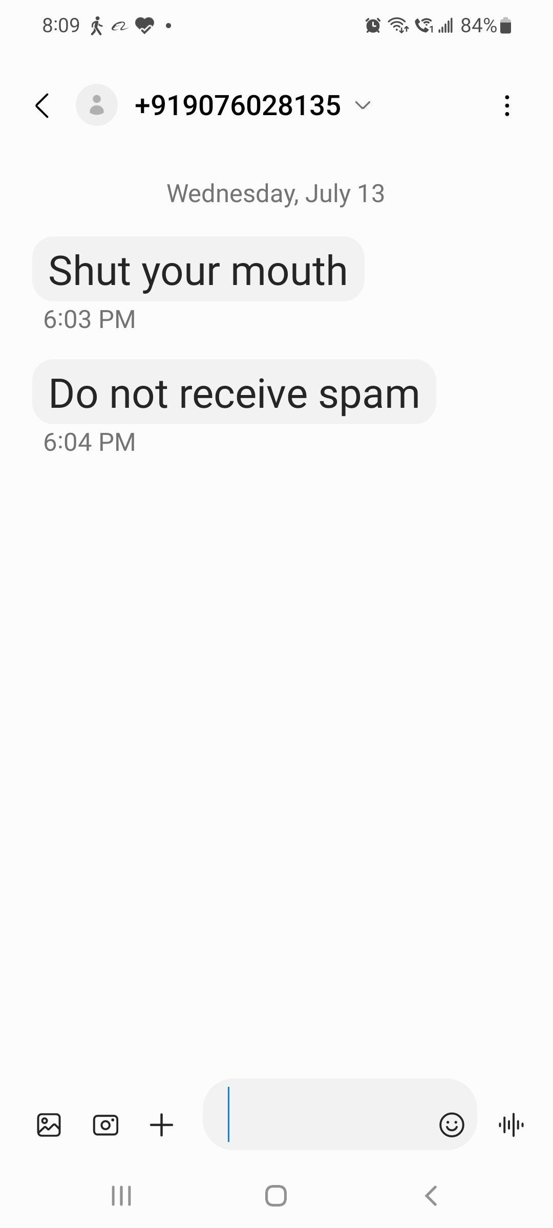 In all fainess I explained that I will be bringing her spam call notice to mouthshut.com. See her sms to me -attachment.