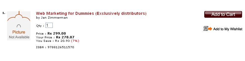 I wanted to buy a book Web Marketing For Dummies by Jan Zimmerman. This book was available only with bookshopofindia.com, an online book shop.