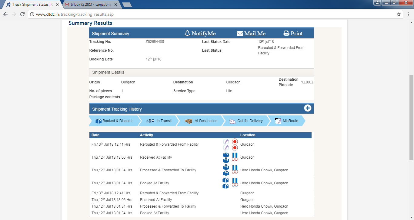 I have never observed any pathetic service more than that provided by DTDC couriers. I delivered a packet on 12th July' 2018 from Apna Bazar, Gurgaon for onward delivery by 13th or maximum by 14th July' 2018. The packet was containing a duly filled format and a cheque to be submitted in a reputed school within Gurgaon. The courier did not reach the destination till expiry of last date, i.e. 20th July' 2018. I kept on calling their Customer Care department who hardly pick up any call after half an hour. All the team members never bothered to find out my missing courier on time. Last date of submission of the fee expired but my courier did not reach the destination before last date.