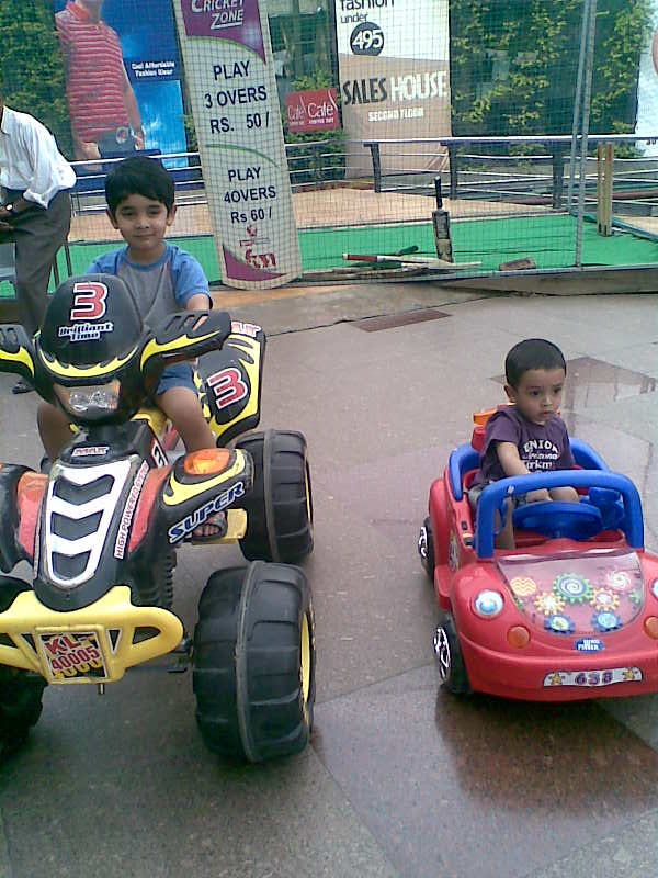 Folks…trust me…This is one mall in Delhi which caters well to our lil packets…..they have a wonderful play area both at the front and at the rear end of the mall….and they entertain the lil angels. From the age 2 to 13/15 years. To start with they ve bungi jump….go kart. Motorized racers/bikes. Toy cars. Merry go round. Toy train. space car Columbus boat and what not………..MAI TOH THAK JAATA HOO…but my wallet looses some weight there…….;-))