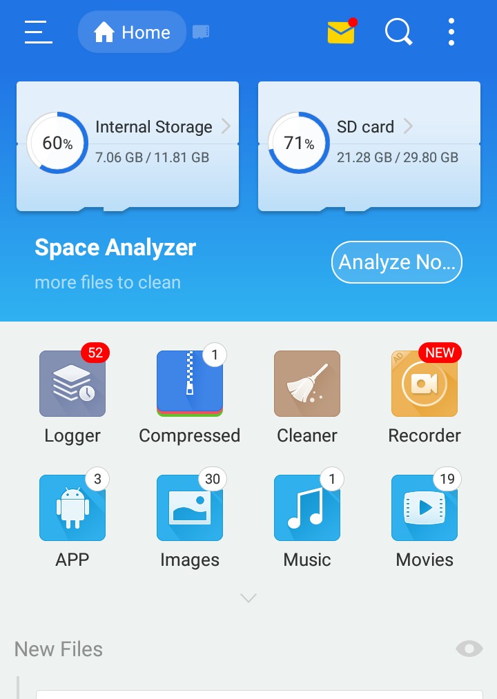 Its layout and design is simple and user friendly. For using this app their is not any need of sign in. Its background colour is blue and white. On its front opening it shows system memory and connected memory card or otg connection and gives user to explore directly their required place.