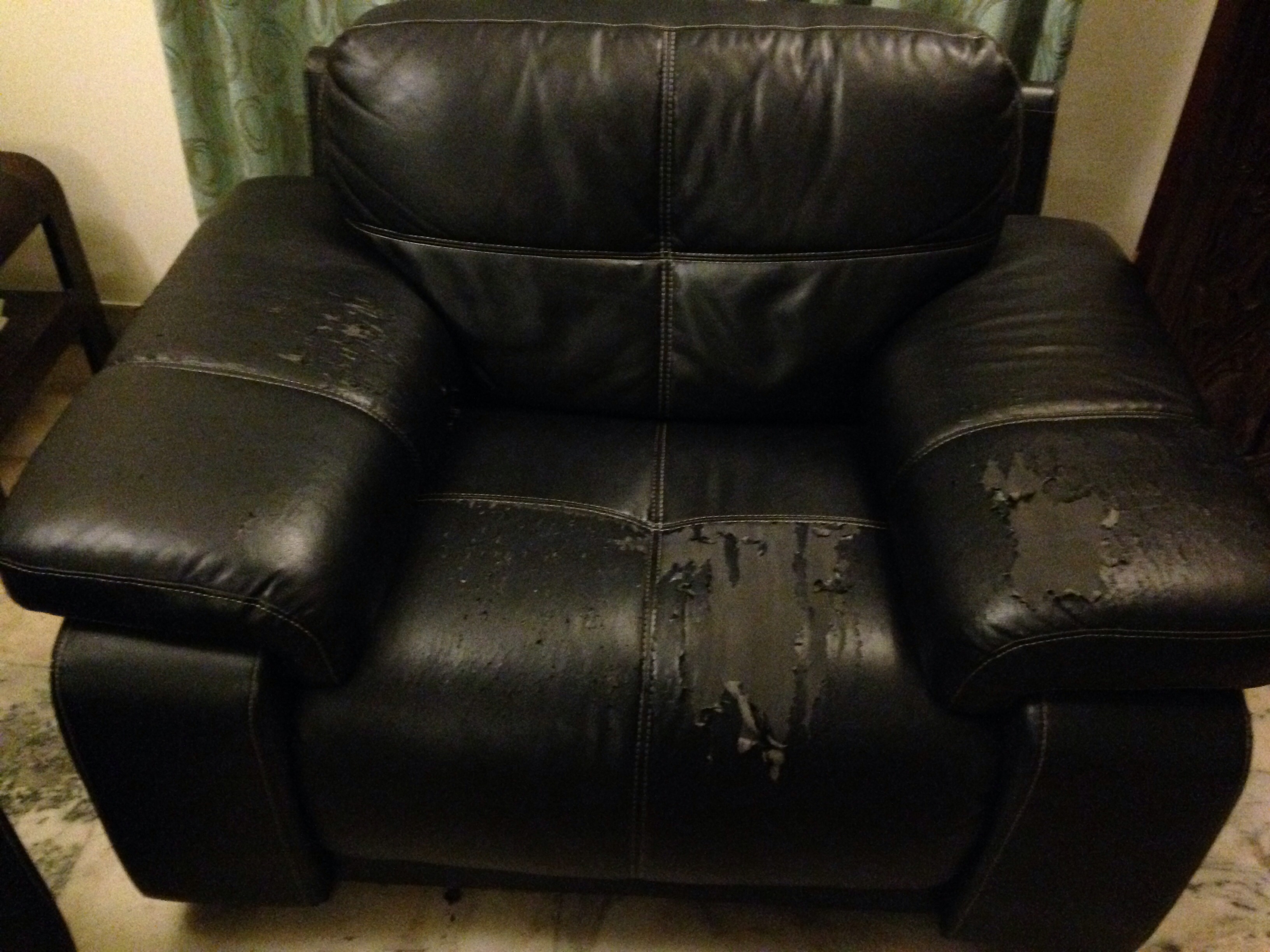 When I bought the sofa the sales guy told me it's genuine leather in body touching areas. I know why leather is and knew it wasn't. So I asked him are you sure. He went and asked someone else and came and confirmed it is. Since this guy confirmed, I believed it even though in my knowledge it was not leather. When the main complaint l happened I raised it as an issue, the customer care told me it is not genuine leather.