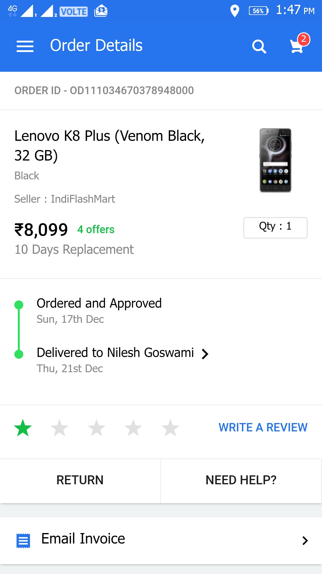 Very disappointed with flipkart. Though in past, had some ok experience.On 15th December 2017 at 11am, I took a product Lenovo k8 plus of rs 8999 in my cart. In cart its value was Price 8999Festive pass extra 10% discount ( upto rs500) That is 8999-500= 8499. HDFC card discount 10% making final price to 7649After 1hour, when I was ready to buy, I saw rs8999 as final price, festive pass discount was not getting applied. I talked with customer care, they were even unaware of festive pass discount. I talk with their senior Vikas at level 2 and he promised to complete purchase with hdfc card discount in rs 8099 and he will reimburse rs500 after purchase. I did that.After purchase, I made request in customer care to ship product only when issue is resolved. Why to aishwaryasingh23 rs500 extra? But product was shipped with complaint in unresolved state.In 48hrs I received call and mail from FK that Festive pass discount is not applicable on Mobiles, large appliances and some baby products. I told that it gets applied. They asked my to send snapshop. I replied their mail with snapshot of festive pass discount being applied on another mobile and vu television which comes under large appliances category. Since then, no response.I called customer care several times, but each time I got 48hrs time frame. I talked with their senior Asma Sheikh at level 2 and she told that Festive pass discount is applicable only on fashion products. Seems flipkart is just picking up gals from road and giving them senior position. Festive pass discount is applicable on most of products. Compare conversation of both seniors Vikas and Asma Sheikh, completely contradictory.With another customer care, when I told, I need refund, he said only in case of complaint in mobile, u can get replacement. I asked if flipkart cheated me, wont I get refund.I disconnected call saying we shall meet in consumer court soon.This is scenario of flipkart and this is in short.