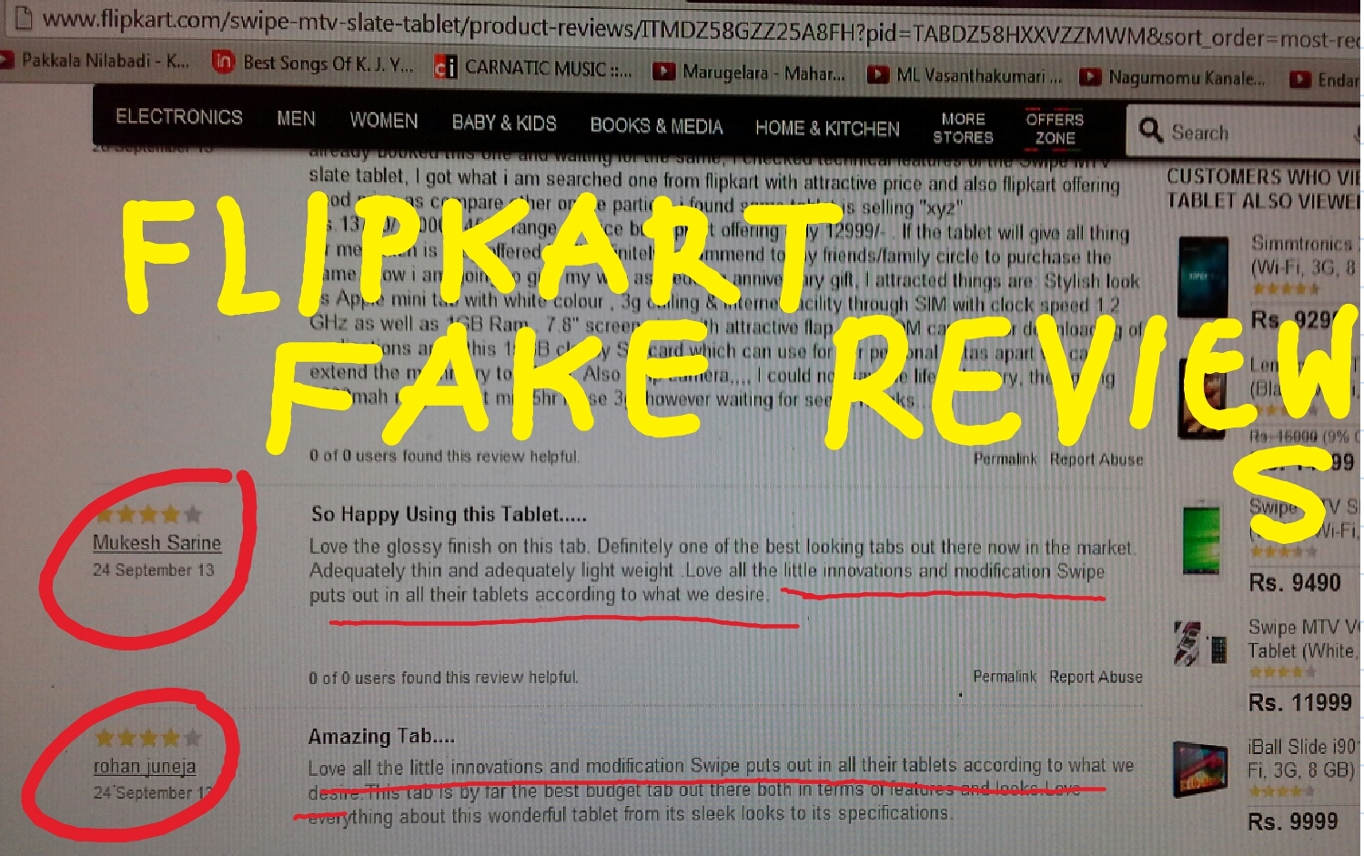 Here is an example....These were the user reviews regarding Swipe Mtv Slate..these were posted even before the tablet was launched officially. Please see the photo I enclosed...even a school kid will understand the reviews were fake.
