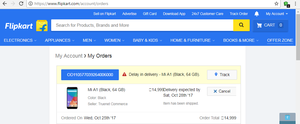 Such a pathetic experience ever because of rubbish customer care response. We are constant online buyers and we as customers know how online business works and their rules and regulations but to all who buys from Flipkart never expect a customer care agent to solve ur problem. Instead, they increase it for you. 28/10/17 was our delivery date we ordered OD110577039264006000 a MI A1 mobile(rs.14999/- prepaid order and a birthday present it was) since it was business address and a 4th Saturday we called the customer care to confirm if the parcel is going to be delivered the IVR machine gave us the time 7 pm and to my surprise the agent also said it will be delivered by 7 pm on 28/10/17.
