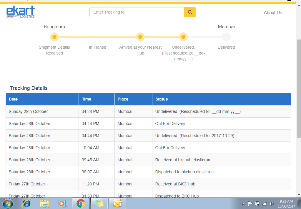 We immediately contacted the seller and got the address, the next day we went to Kalina and collected the parcel that WE PURCHASED ONLINE FOR OUR CONVENIENCE early in the morning. And to another surprise, the order details on the website of Flipkart shows a delay in delivery even after the logistics at Kalina opens at 6.30 AM every day this actually shows how efficiently the company works. UNPROFESSIONAL= FLIPKART