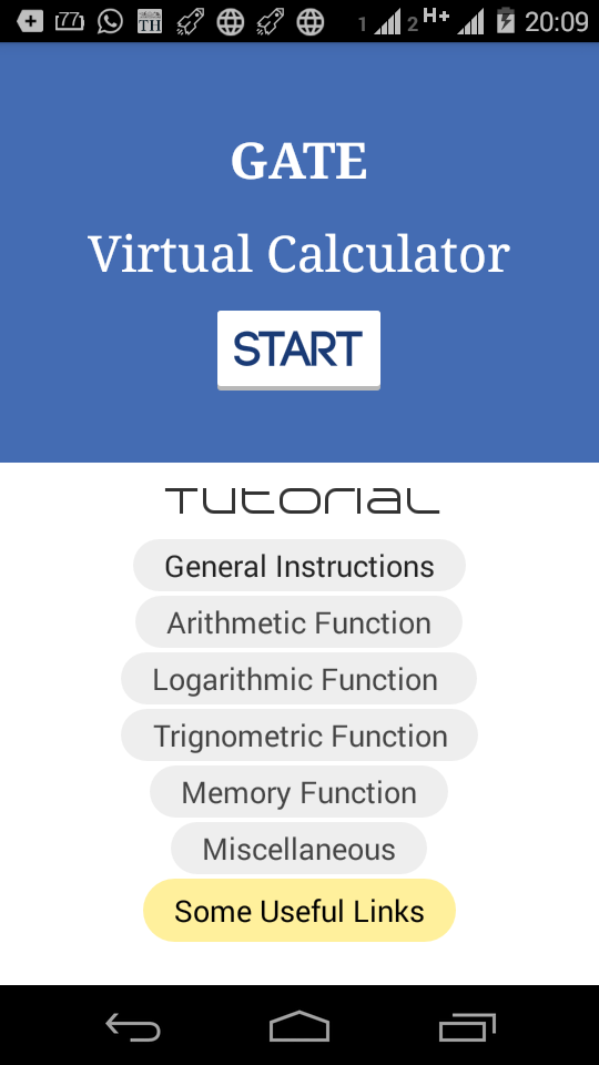 12) different from usual scientific calculator: if you have a habbit of solving using a Casio fx-991MS kinds of scientific calculators then you have to break the habit. Because the method you use to input problems in Casio is much advanced, improved and user friendly, because GATE virtual calculator is primitive, under developed and full of bugs. You have to put each problem given inside a bracket one by once and note down the answer and repeat, similarly goes to numerator and denominator problems, where as in Casio you can't put the whole problem at once and get the answer. If you use the Casio input method in GATE virtual calculator then you are bound to get the wrong answer no matter how careful you are.These are my genuine experience as I have using it for over 2 years now. In recent GATE exam it cost me a good numver of questions even though I practised heavily in this app for 7 months befor the exam. I request the developers to develop a new app which is much like Casio or improve this app to make it like Casio.