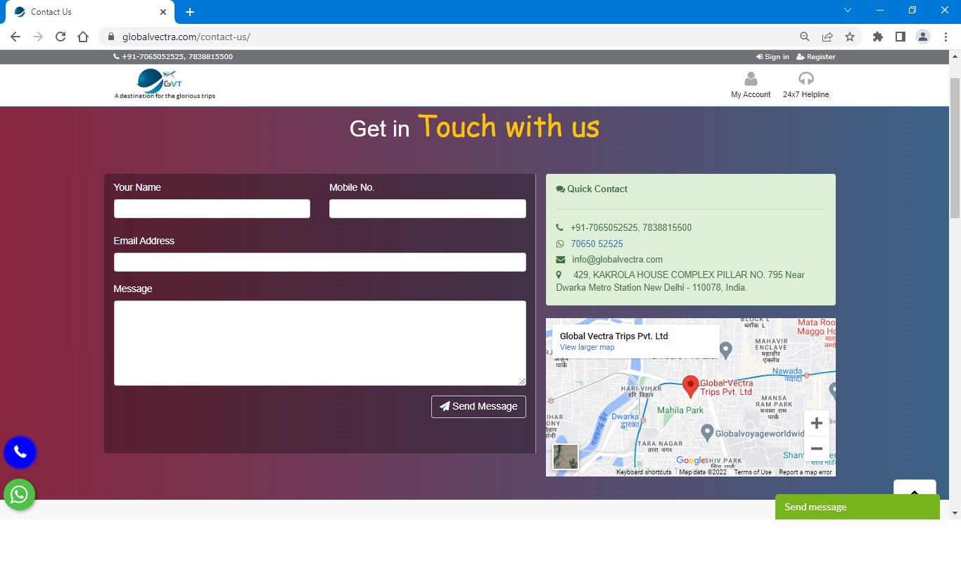 Email: info@globalvectra.com Phone:+91-7065052525, 7838815500(Also operates with numbers+91 75048 48750 and 8800665540)