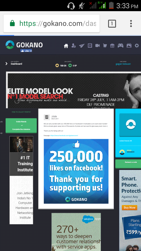 Hi guys my name is gagan and today I am going to share my experience on gokano.com.basically it is a site for getting free gifts and to get them we need to earn some gn points and you can get gold membership by inviting more than 30 friends and you will be a gold member the benefit of this is you can get 2gn points for every refer and collect daily products . so you can earn them by