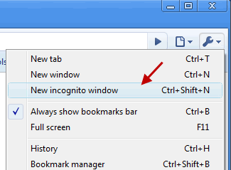 > "INCOGNITO Mode". Now people who does not know about this feature I will elaborate a little. If we are in this Mode the browser doesn't keep a track of the browsing history, nor will it store any cookies from our browsing. Now how to go to this Mode. Its very simple. Click on "Google Chrome" icon on the Screen. One the browser is open you need to click the Three DOTS that are just below the "X" Mark. Then on the drop down menu click "New Incognito Window". Then a new window will pop up and we can continue browsing. There is another quick way to go directly to the Incognito window. Once the Browser is Open you need to press the Keys "Ctrl"+"Shift"+"N" on the keyboard and the Incognito window will pop out.