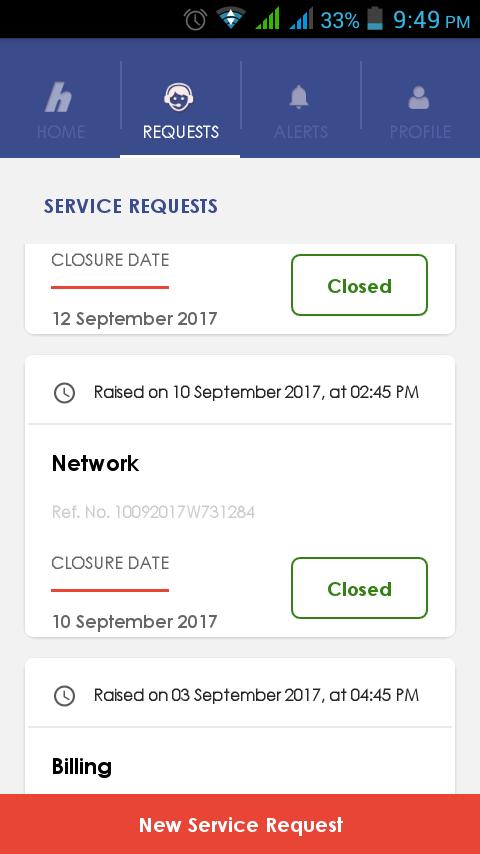 Tried there app to raise complain It doesn't even work, If you call to customer care and raise the complain. They do raise a ticket but without resolving the issue or without confirming from you thy will close the case as resolved.