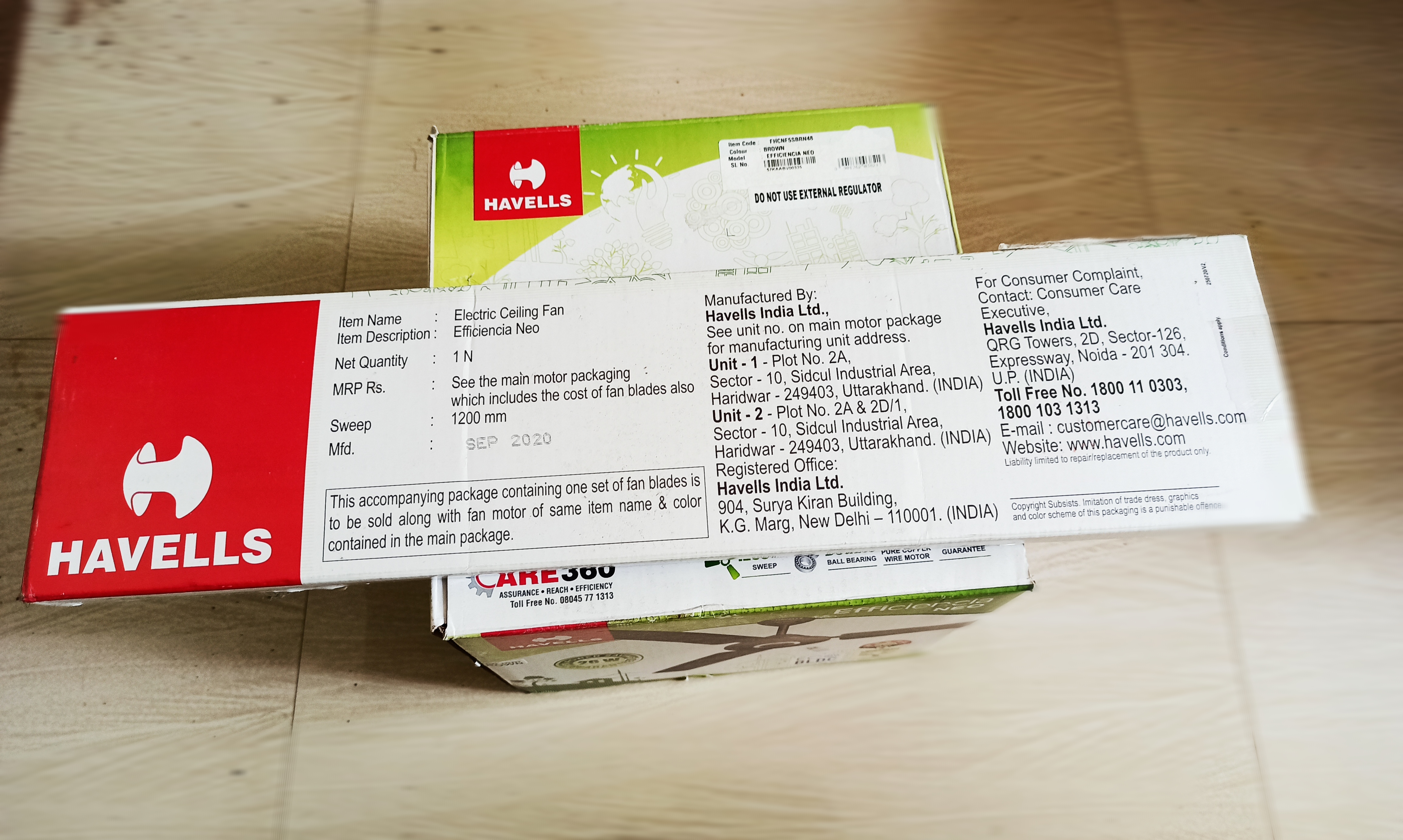I bought a Havells 1200mmSS-390 Ceiling Fan five days beforebecause my old fan was damaged. I purchased it from a local shop near to my home town.