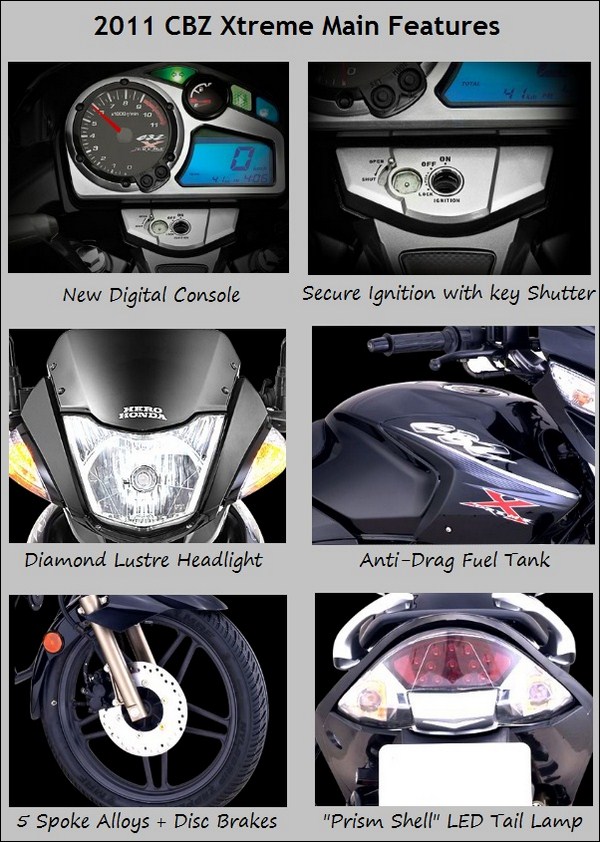 Well, let’s now get a little deeper into the topic. First to notice is the meter console. The new CBZ Xtreme has now got a sexy Digital-Analog Meter Console. The layout is very neat and matches to the looks of any present day bike. The small fuel meter makes the console look even more gorgeous. The digital speedo is backed up with a blue backlight.