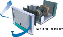 2.twin turbo fans-work at higher rpm with lowest noise levels of 43db