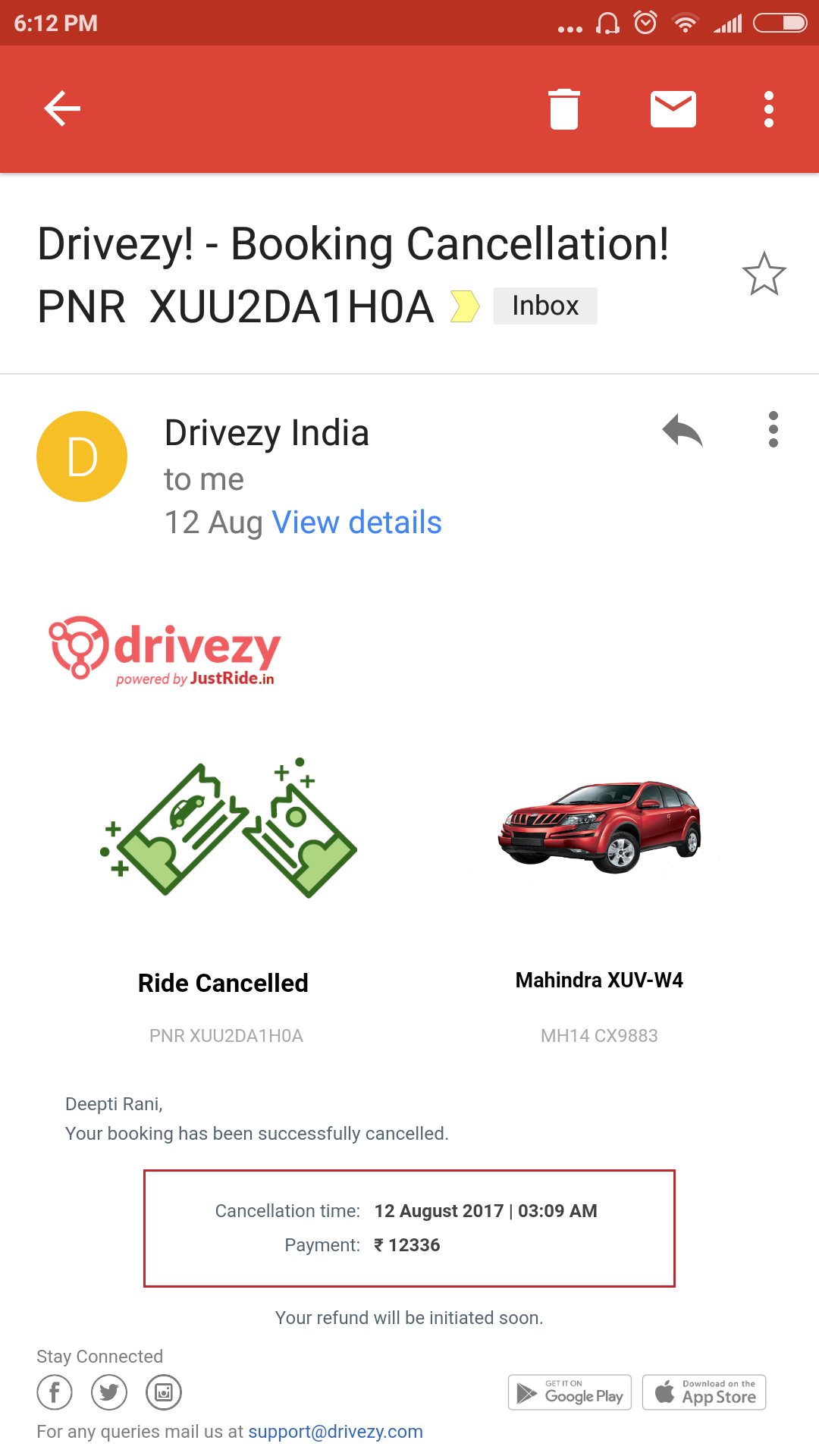 Since I booked the car long time back I got it as a good deal but as they realised it was peak days they offered it to someone for a better price as we sighted the same vehicle from Drivezy with just one digit change in the number plate.