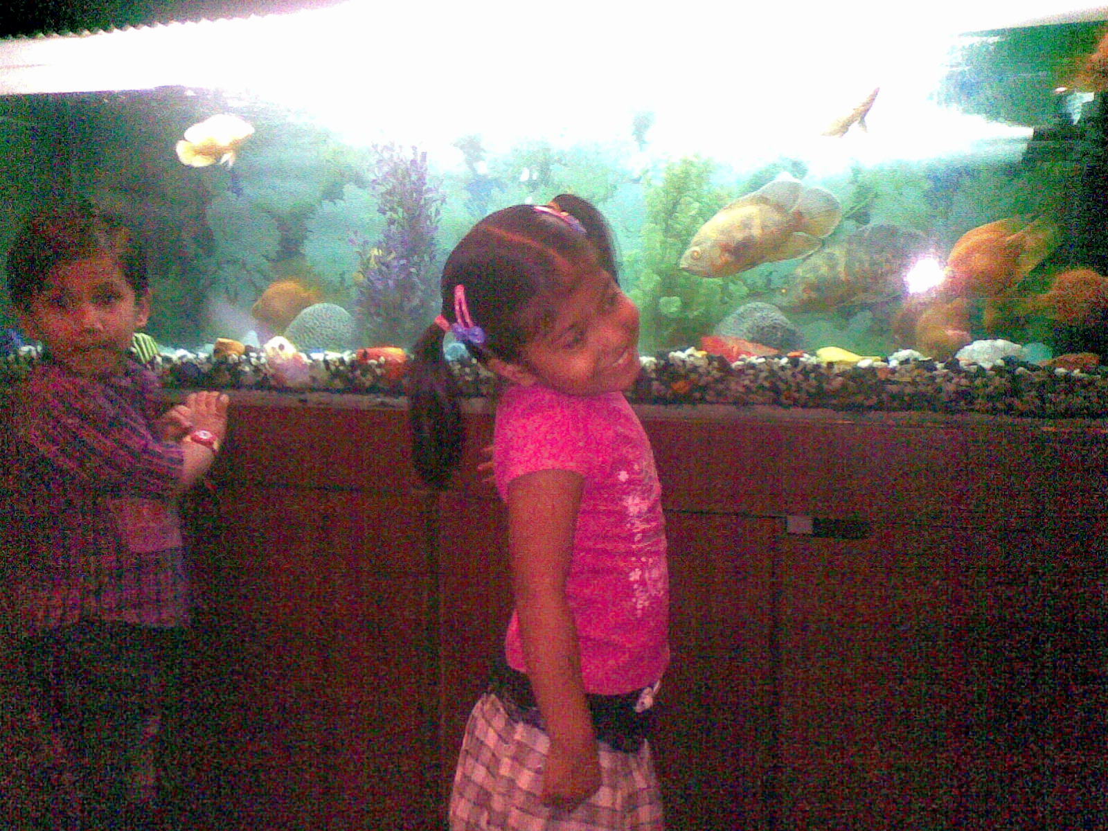 A perfect 10 can be given. The AC was at it`s optimum temperature. The lighting was kept dim adequately which felt pleasing. There were two sections. We entered at the farther section, just like that, may be for more privacy, though they are on the same floor.An big beautiful aquarium was spotted by my daughter with six mid sized golden fish, a very big black fish and three more fish variety. By the side of it was a mini fountain in attractive running condition.The mild music was ON, though the volume could have been kept little louder. The purdah and other decorations were in place. I got a vacant six seater table with cushioned adequate height chairs.