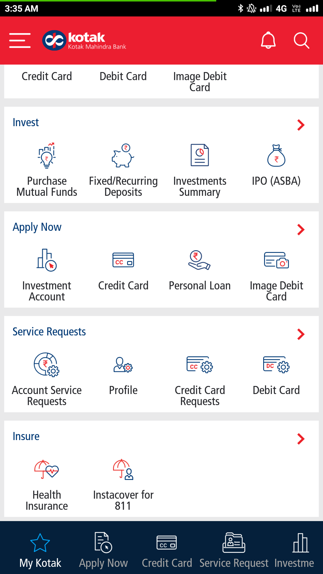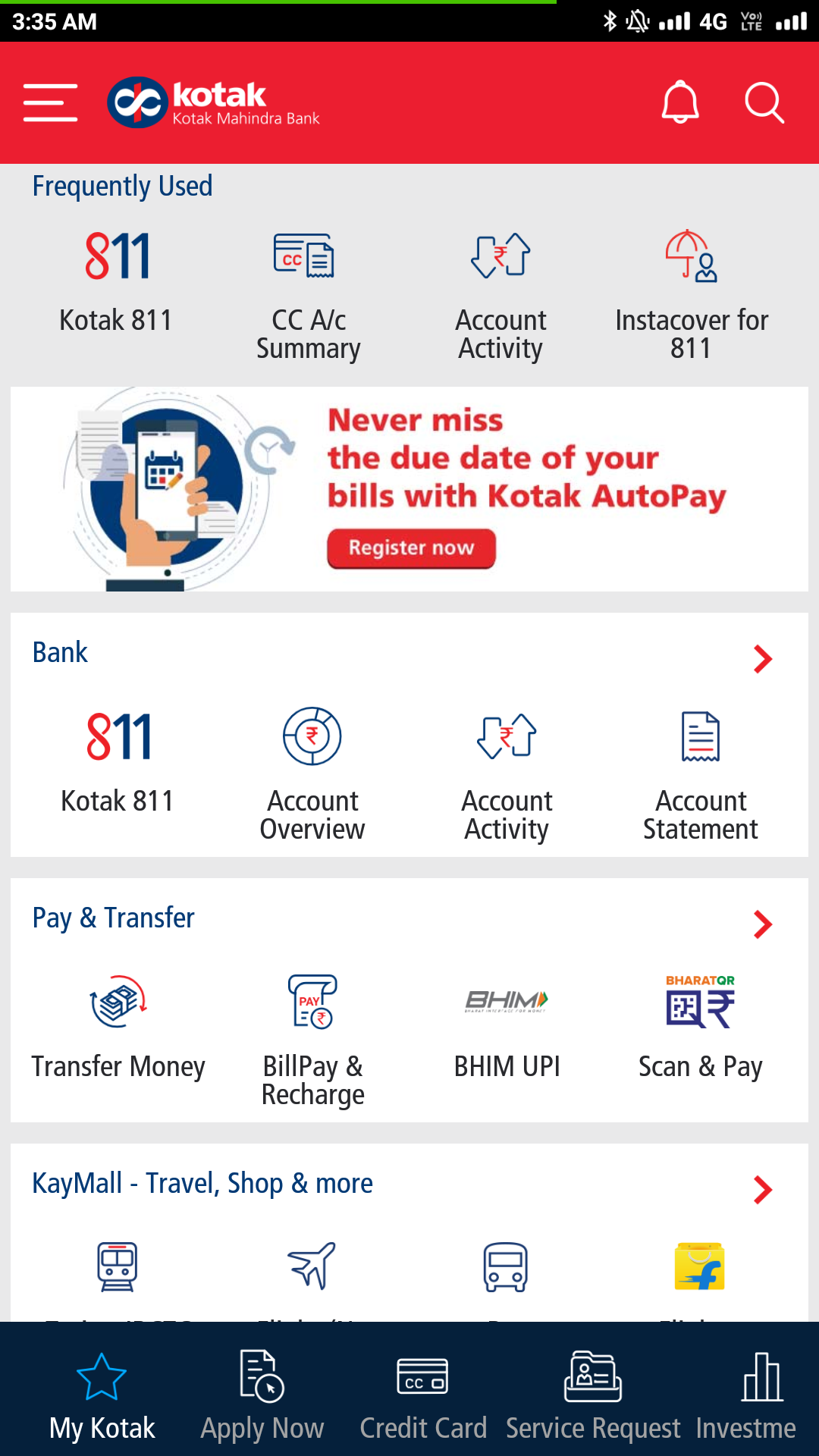 Kotak mahindra 811 app is very nice and friendly. It is running very smooth. Any body can open the free account online through this app. once he/ she will download from google play. After verification you can do online transaction, register the third party, pay own bills, buy kotal general insurence, can do fix deposit very easily. You can buy SIP also through this app. Can pay Credit card bills also. You can make own pictire profile also. Account summary. You can easily apply for perosnal lone also.