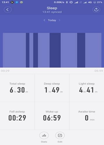One of the major application of Mi band is the sleep tracking. After my online Anasultanlysis on sleep our sleep is divided into many phases and normal sleep for adult is around 7.5-9 hours with deep sleep around 1.5 - 1.8. So I was happy with my results on the deep sleep part which was in the normal range.