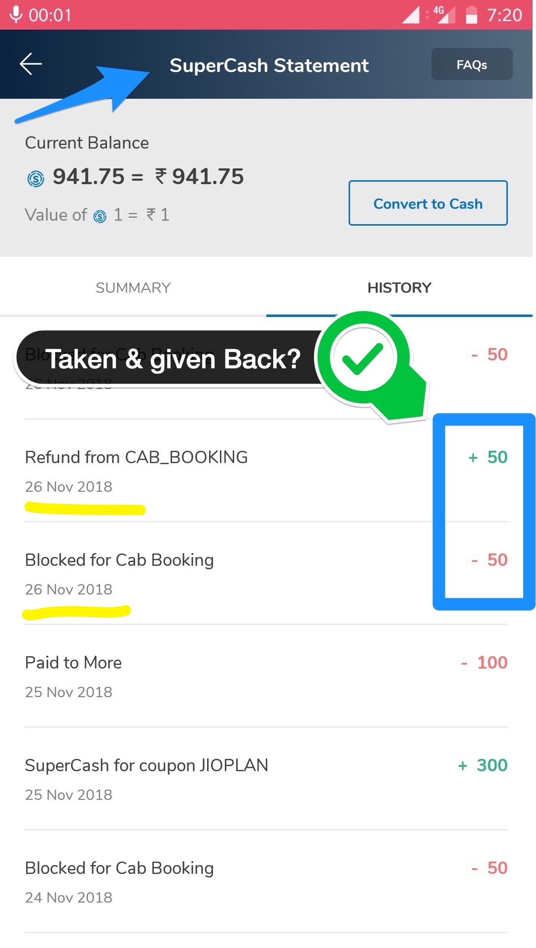 But after the ride was over, they refunded that supercash and took the entire money from my wallet. So That supercash was never used.