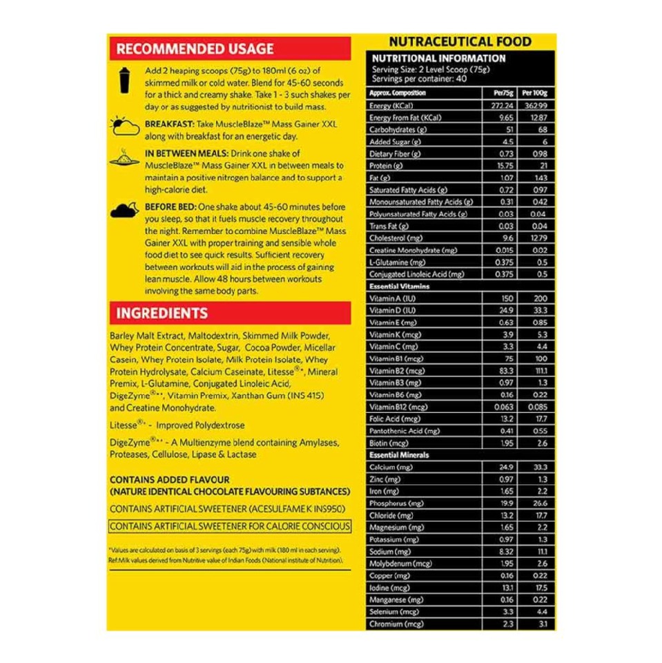 This mass gainer tastes and mixes well, but it will not satisfied me as my expectation.Because you can check the the nutritional information about this.thats the label containes the nutritional information of two scoops.IF we divided them by two we can actually get the nutritional information about each scoop, its very poor as we compared to other mass gainers( it only conatines 8 gms of protien in each serving)