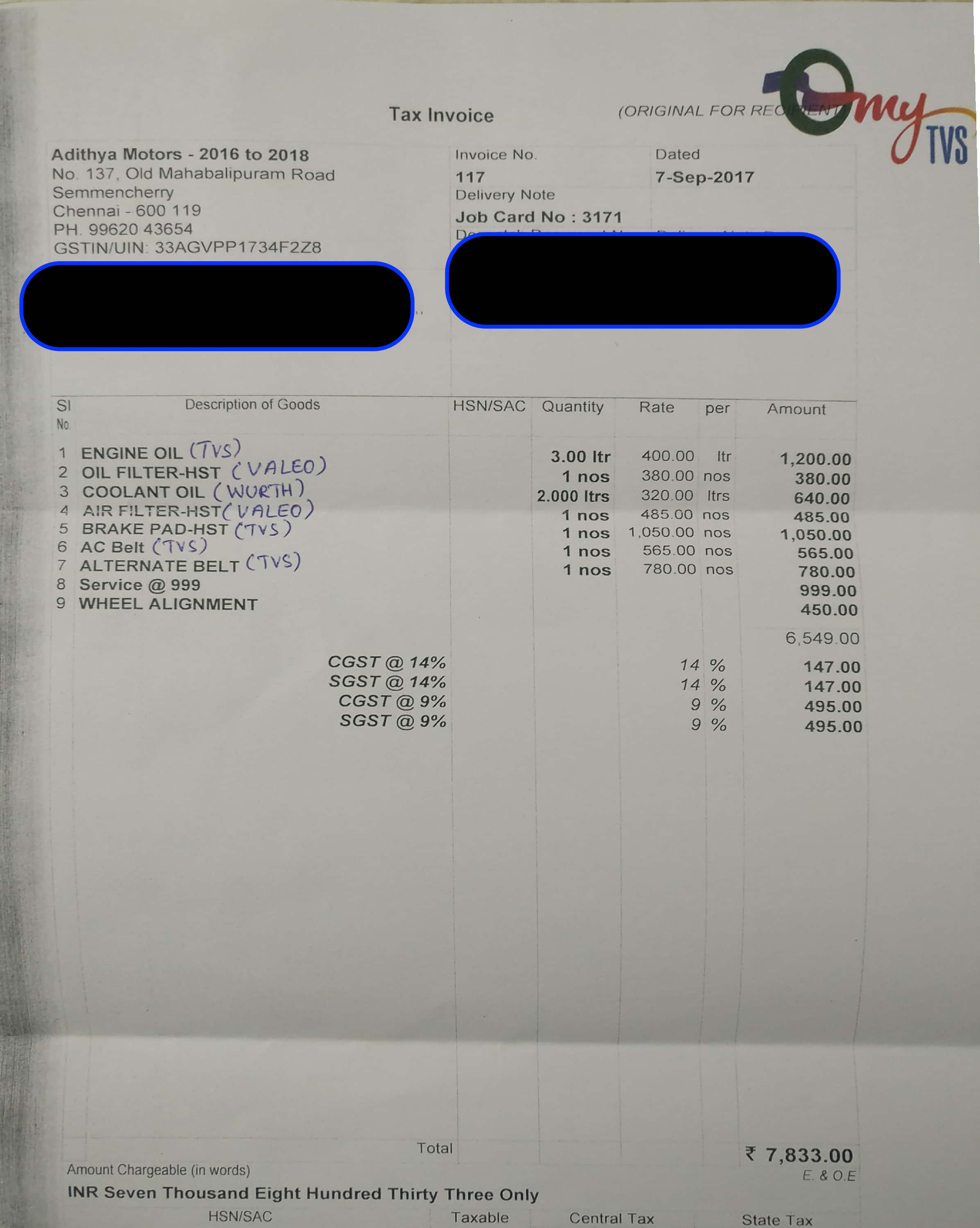 As promised, we took severe action against our garage partner also one of our executive was their in garage to scrutinize their service/spares and Adithya motors has apologized for the same. But we are sorry to say that we cannot reveal data's about the Xantro vehicles serviced with Aditya motors(Sent from GoBumpr) due to privacy concerns.