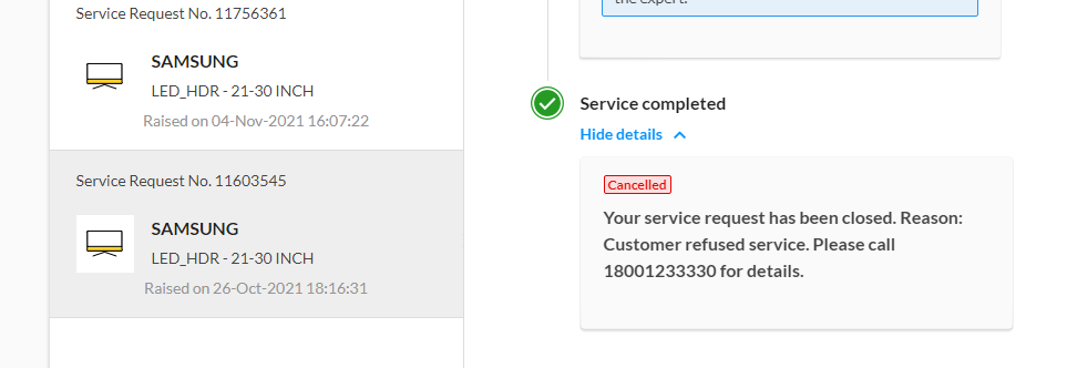 You can see the attached screen shots for proofs. One more thing is they will close ticket without any conclusion, simply update comments as customer refused the service which is joke of decade.