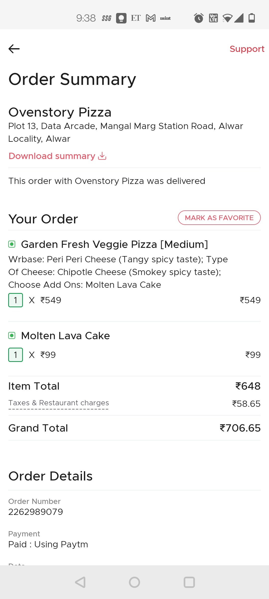 I ordered one pizza and one drink from ovenstory pizza via online delivery. The delivery was handled by the outlet itself, what happened is it dhowed that delivery will be done in 30 mins but it got delivered in 50 minutes. Now my younger brother went to pickup the order from main door, as it was pre paid. When I received it, the pizza was cold, and one toppings from the pizza was missing. Also the food was spilling, also the shake was not thick and taste was very much bad. I personally felt that outlet is cutting cost or something but not providing right quality. I registered the complainant with ovenstory, they told that they will replace the pizza within 50 mins and asked me to wait. I kept the pizza, and waited for the delivery, now no delivery happened and customer care person said that they cannot deliver so they will refund and it will come in 48 hours. Guess what no refund came, now after 2 days I went to outlet they told me to contact customer care only or the online delivery partner. Ultimately no response came and my money got wasted.
