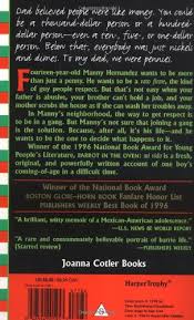 This is good book to read . Parrot in the oven is a good story based book. the language used in this book is so simple that even the students with basic english knowledge can understant the narration of the story very easily. its a fantastic poetic as well as real. I am not telling this to make the book fame but its true. you can feel it from reading the book itself. the story in the book is mainly based on a boy named manny. this book says about the love story of manny. the author hade naratted the story so nicely. I liked this story very much you should read this story. you can improve your reading and speaking skill from the haibit of reading book. this book is good as the author used simple and easy words to read and understand