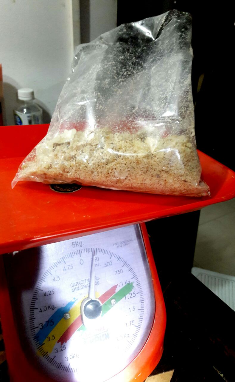 The second image shows the weight of dust and powder 175 GMs out of 500 GMs total weight of the package remaining that was deliberately passed off.