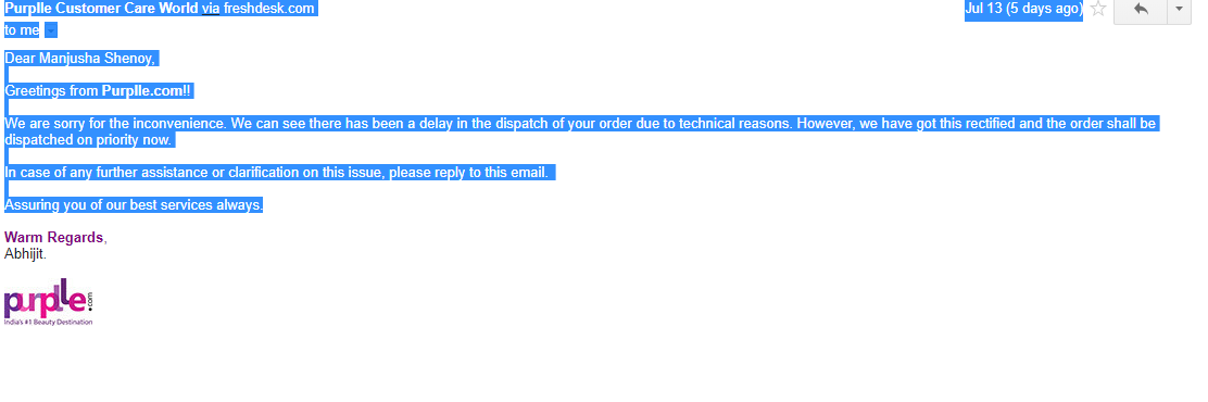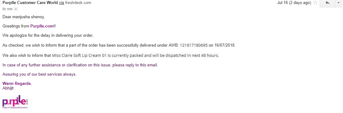 I'm never using Purplle.com anymore nor recommending this to anyone.