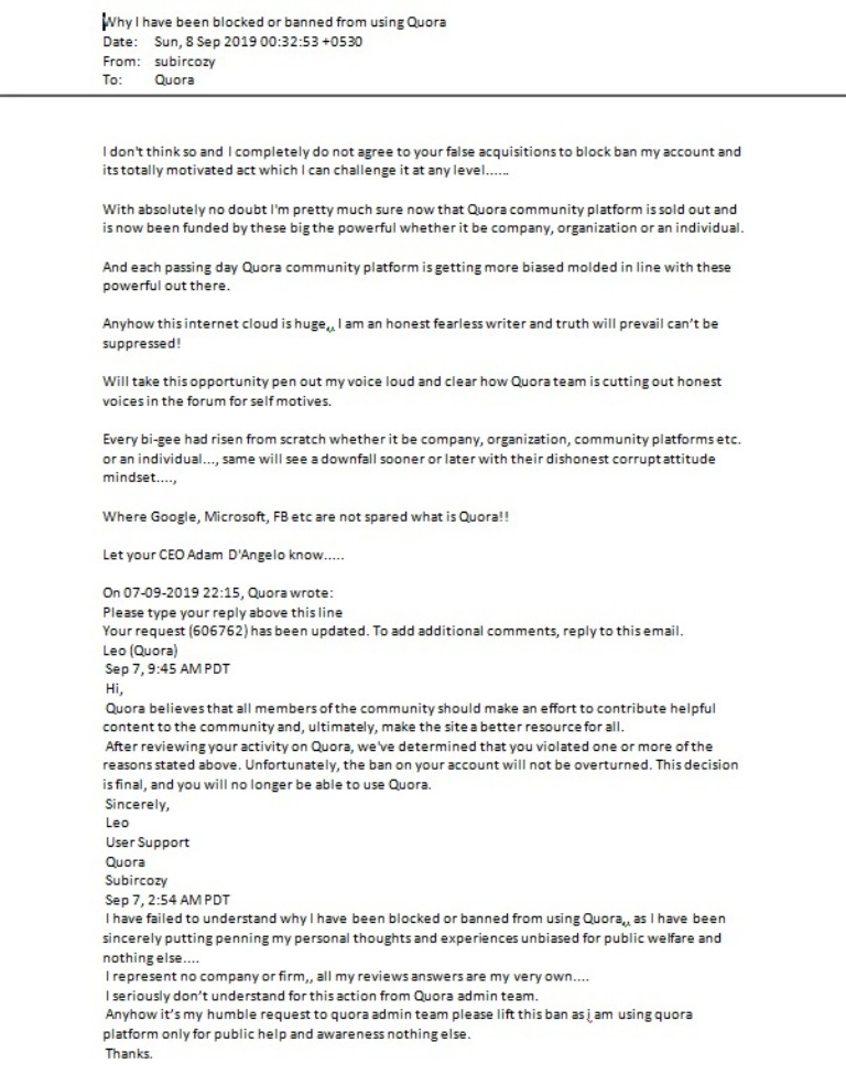 But guess what., after 7 years on quora suddenly I get mail quora moderation blocked and banned you from editing or using quora.