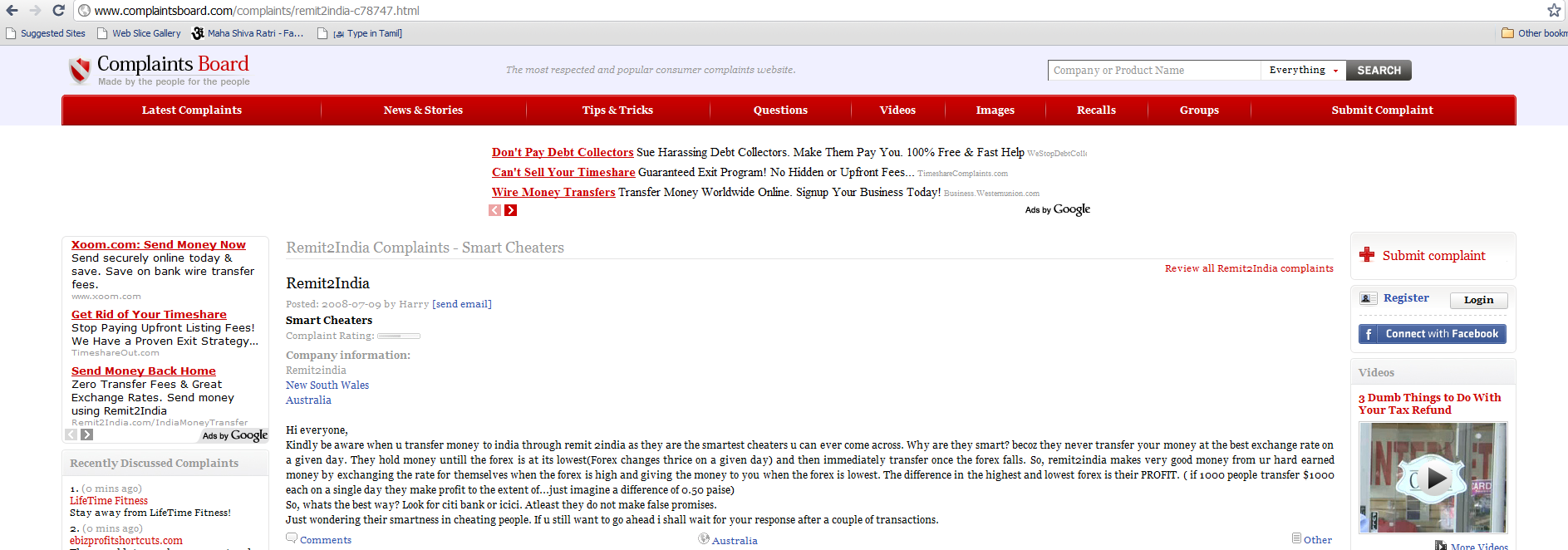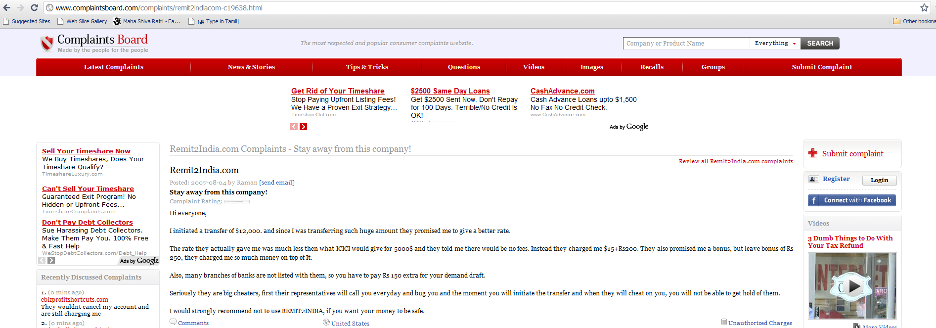 This brief review is to share my recent experience with Remit2India and its allied sister remittance services runs by Times of Money group. I seriously doubt if Times of Money is really from the house of Bennett and Colemen considering the amount of serious discrepancies between the two. I would seriously pray that Bennett and Coleman disbands Times of Money group because it may prey upon the hard work and the good reputation earned by the group because of the unscrupulous business practices of TOML.