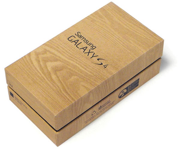 Let me begin from the moment the **S4 box** was in my hand. The box is pretty cool. It looks as if it is made entirely from wood, but essentially it is made from **recycled paper**. The box contains your **phone**, a **battery**, and a **charger**, a pair of **headphones**, a pair of extra headphone **buds** and some manuals. The phone is very light at first mainly because there is no battery in it at first. You will feel as if you have 5 pages in your hands. One more thing is that the phone supports only a **micro-SIM**. The phone is available in mainly two colours viz. **White Frost** and **Black Mist.*