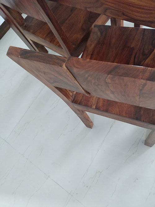 Recently in the month of Sep'17 one of the dining chairs back support has cracked from the joints while we were sitting on this & the person sitting on this hurt badly from back that even we had to took him to hospital. This really gave me a doubt that these furniture are built with sheshem wood or defective woods which can't even take the weight of 60-65kg of a person sitting on it.