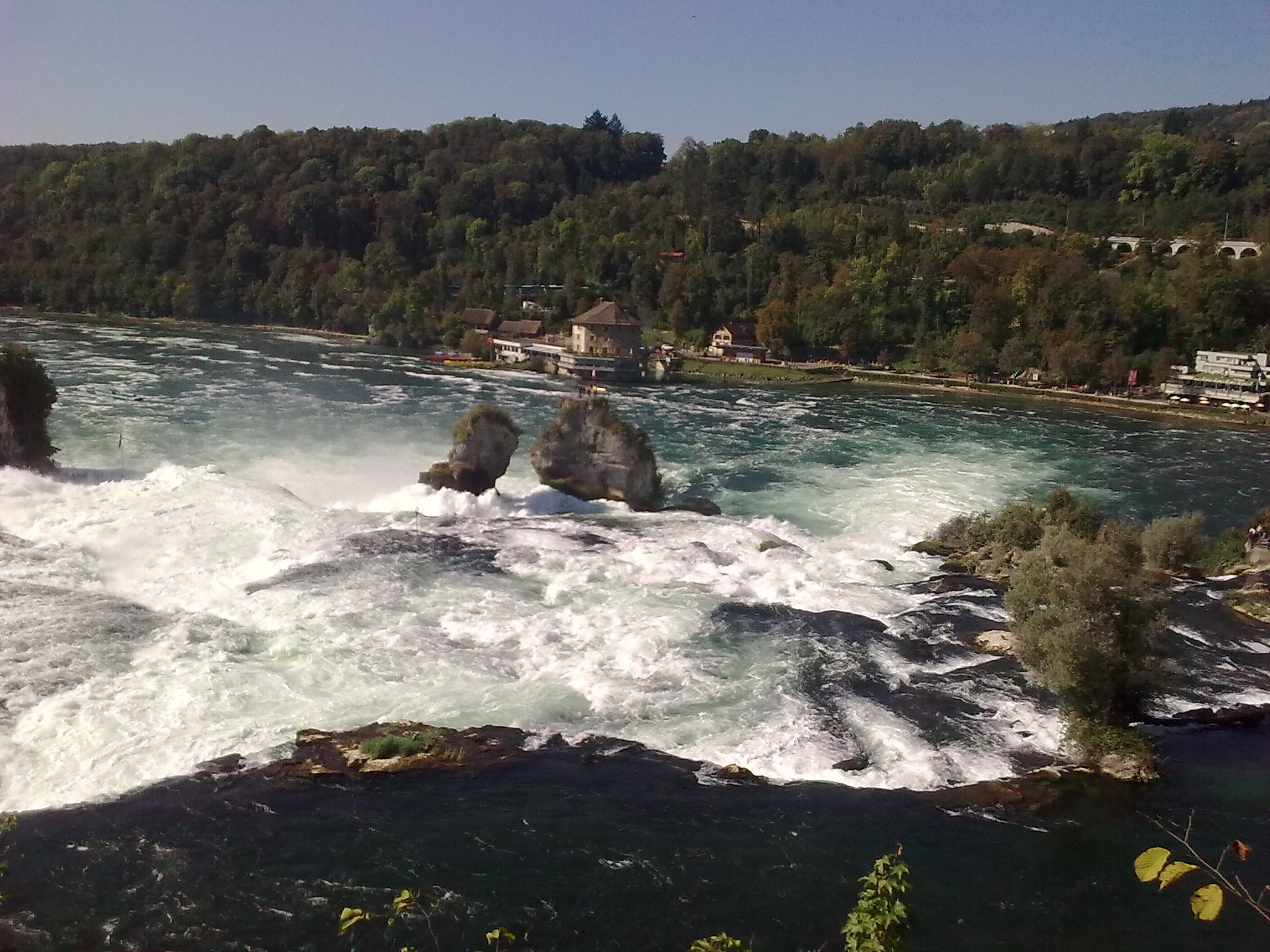 It was late September 2014 and I was in Stuttgart. I wanted to go on a day trip outing. I had heard a bit about the largest falls in Europe, i.e. *Rhine Falls*. Thinking that would be a good choice, I set off one Saturday morning. Although the relevant town Schaffhausen is in Switzerland, it is located very close to the German state I was in, at the time. For such places, there is typically a discount train ticket available. I availed of the same and reached Schaffhusen by train by around 8.30 AM. One gets to see some really picturesque views enroute to the same during the train journey.
