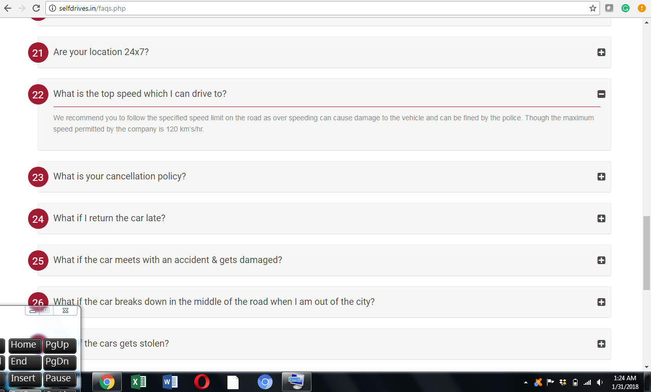 After reaching there the fleet executive told me about the speed limit for the cars is 80km/hr which was 120km/hr as mentioned on their website at the time of booking and still there(refer to the screenshot attached) and I was shocked to know about such wrong deceived info which is completely different from what is mentioned there on their website.