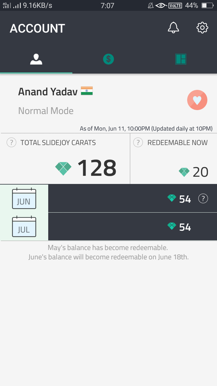 Hello friends , myself anand yadav and I am sharing my experience on slidejoy . Friends I am using slidejoy from 4 months . Its give carats and we want to reedem it into paypal or mobile recharge . Slidejoy gives adds on lockscreen and when we slide our lockscreen we will get carrats , but slidejoy gives carats very slowly . I unlock my lockscreen many times but I earned very and very less carats . It is a worst application to earn money . It takes our mobile data so much . It is a waste of time .