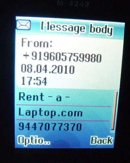 Though the M4242 has a longer screen than the K330, the number of lines displayed in the SMS is halved! The reason: of the 7 lines that can be displayed on the screen, the top four lines are reserved for the header containing the message details - date, sender number etc. See attached image. There is a lot of scrolling needed to read the SMS body.
