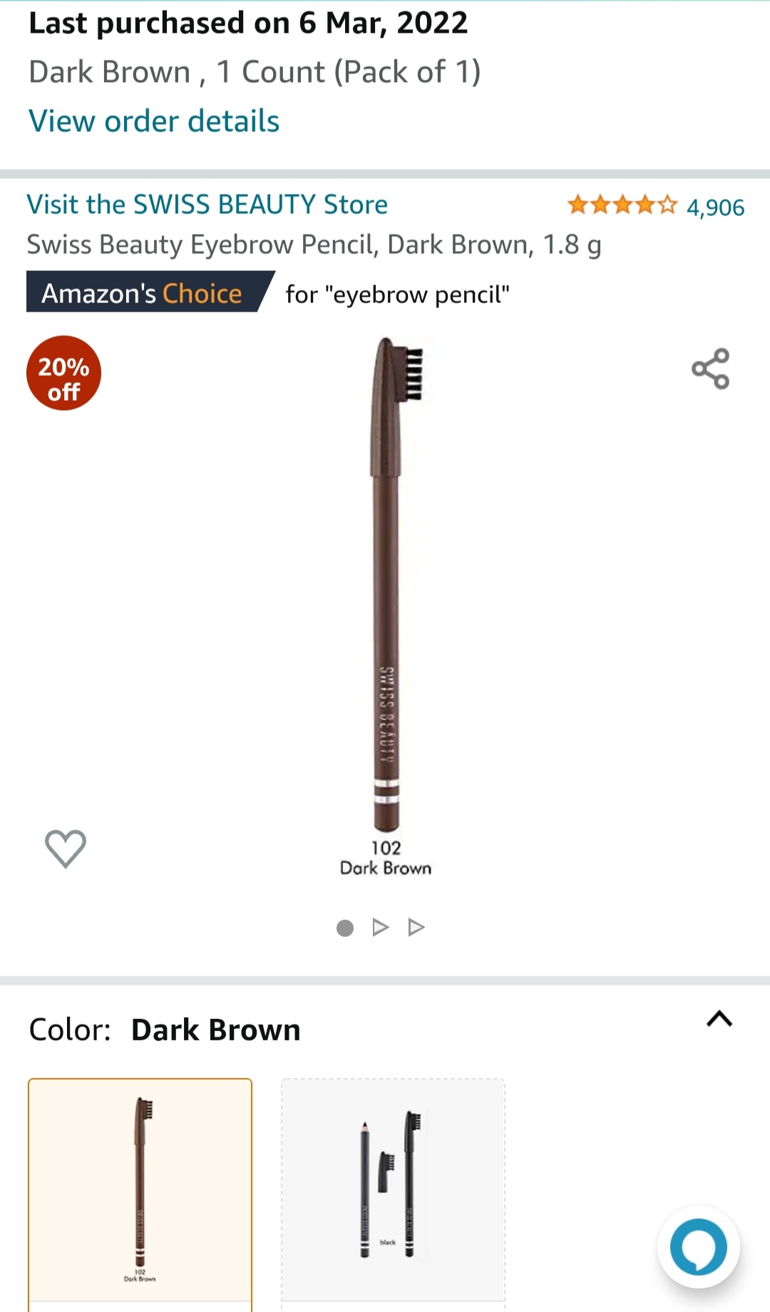 A nice brown shade goes well with my skin tone. Smudge free and smooth glide. Comes with a tiny eyebrow brush which helps you to set the brows evenly. It can be used as a kajal, eyeline, lip liner and to do contouring as well.