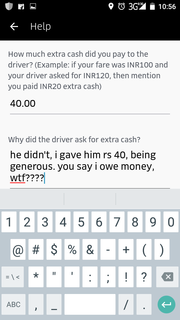 2ndly, they hiked my fare by rs 10 AFTER it was paid in full by cash, and accuse me of not paying an outstanding balance!