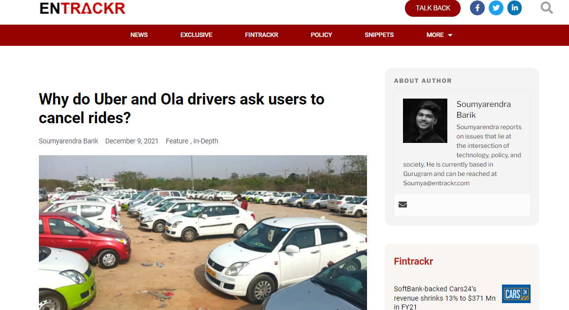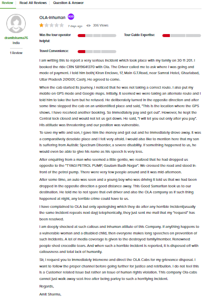 I read an artcle today where a sympathetic justification has been written for the Drivers. I say this to Saumya Sir who has written the article. Sympathy should be for the victim, who can be a rider as well as a driver. His articles speaks of the sufferings of the OLA/Uber Drivers. Some empathy should also be given to riders who have suffered. I am attaching my review an incident and his article. I request everyone to be humane to others. The NCR cabs should improve their system so that both drivers and riders do not suffer. There should be NO BIAS.