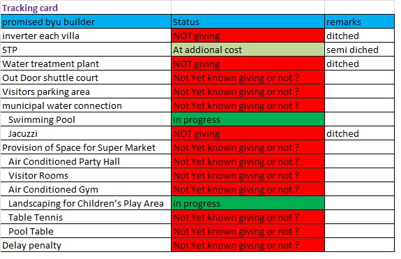 final tracking card shall be known to public in public domain for the better judgement of builder commitments to the customers. We shall timely update here.
