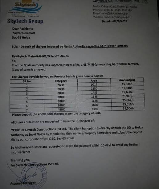 SINCE 2011 BLDR SKTK IS A DEFAULTER ON PAYMENT TO FARMERS ON PAYMENTS AS PER 2011 HC ORDER. NOW HE HAS TRANSFERRED HIS LIABILITY OF DEFAULTED PAYMENT ON INNOCENT BUYERS, MOST OF THEM BOOKED POST THE HC ORDER DATE. A NEXUS BETWEEN NA AND BUILDERS IS SO DEEP THAT EVERY OTHER LIABILITY OF BUILDER IS TRANSFERRED ON BUYERS AND NA SUPPORT THIS CRIME. NOW THE LARGER QUESTION IS THAT WHO WILL BEAR THE BURDEN OF OTHER SUCH DEFAULTED PAYMENTS BY BUILDER LIKE EXISTING DEFUALT ON SEWAR CONNECTION CHARGES OF ABOUT RS. 1 CRS. IN THESE THREATFUL CIRCUMSTANCES EXISTING OWNERS OF MTROT SOCIETY WILL BE UNABLE TO FIND NEW BUYERS AS NOBODY WILL TAKE THE RISK OF BUYING FLAT HERE AND LATER OVERBURDENED BY UNREASONABLE CHARGES.