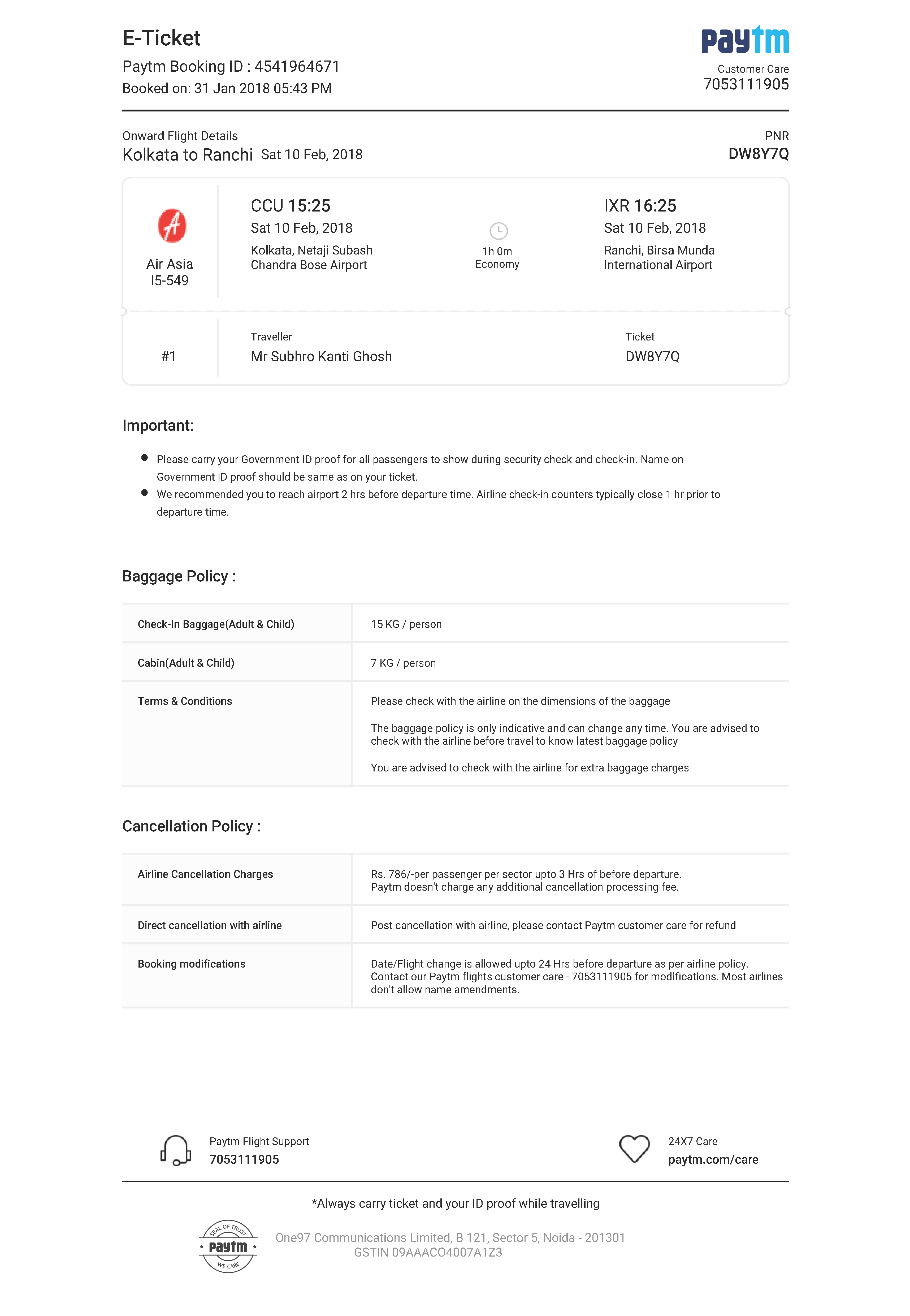 Hello friends. Today I am going to narrate regarding the extreme casual approach of Air Asia towards its passengers. I was returning from Kolkata to Ranchi on 10.02.2018 after an official tour wherein I decided to fly with Air Asia. To my utter awe, the flight got late by almost an hour and a half.
