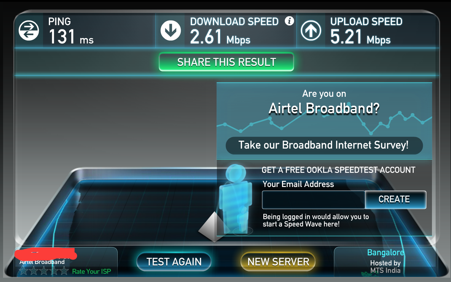 I just upgraded my connection from 24mbps to 100mbps in Bangalore, I was thinking I will get blazing speeds. To my surprise, from 24mbps it went down to 2.4 mbps!
