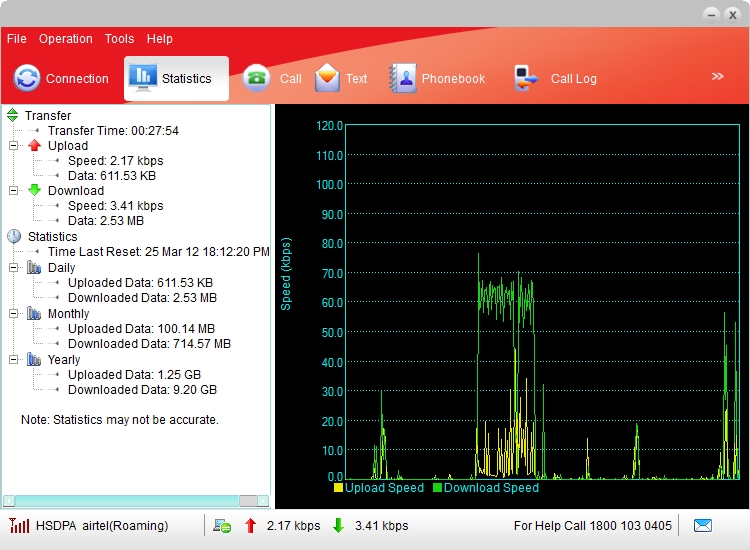 It also shows HSPDA which is 7.2 Mbps connection. Sadly I will have to switch to some other ISP. I had just recharged with Rs 750 which gives 4 GB data for 30 days. More than 3.5 GB is still left but I cannot use it at such low speed.