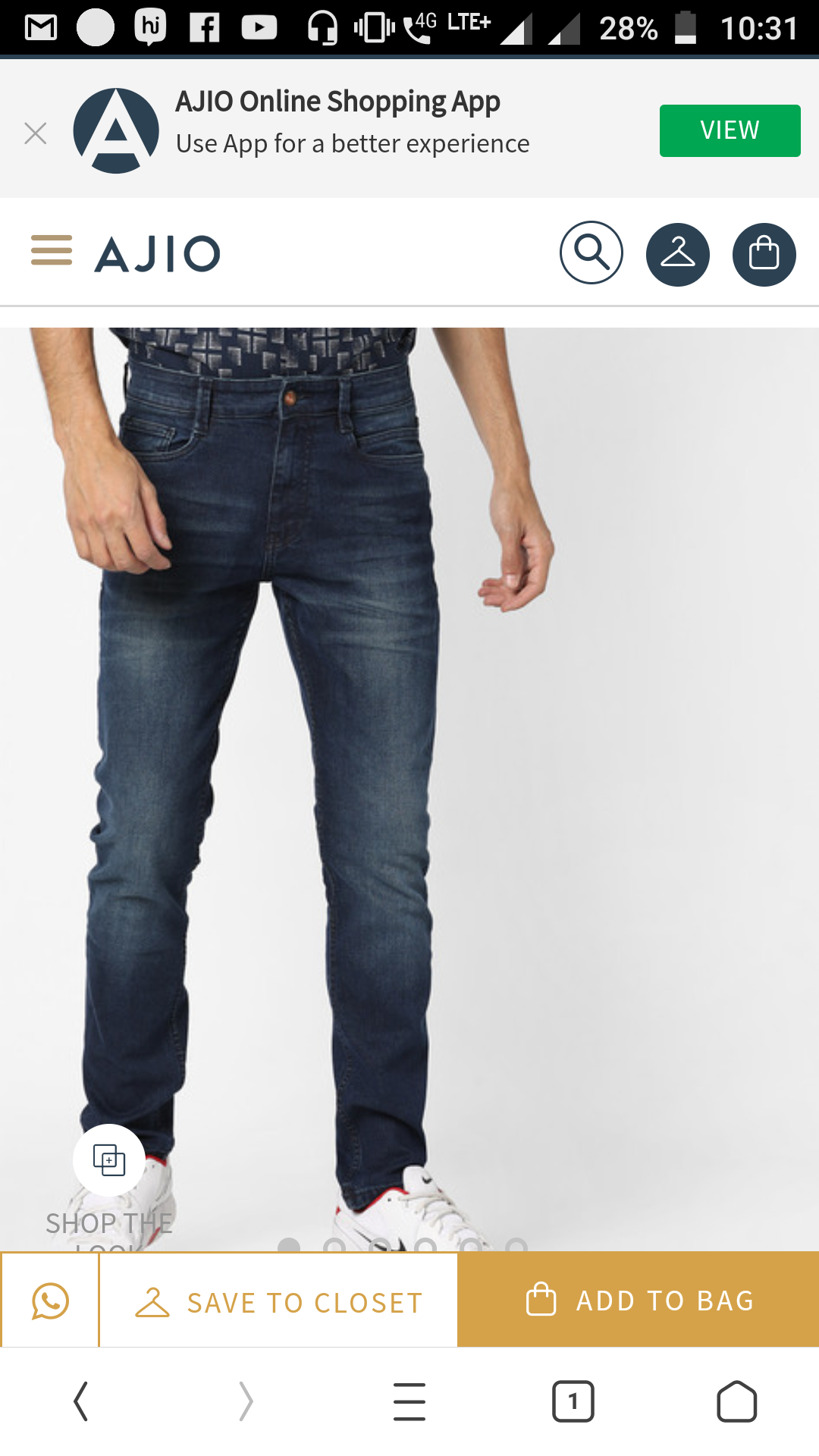 Hello friends today I am going to share my personal experience with ajio.com . recently about two jeans from ajio.com I heard a lot that they have best quality clothes. but recent experience with the products of ajio.com I would say that it's totally lie. because the colour of my jeans loose very quickly and the quality of jeans is very rough if you wear it for long time it starts hurting means I'm getting very uncomfortable with it. and I had pay 1299 for each. so I complaint to return it but they refused to return it back my experience is very worst with it thank you