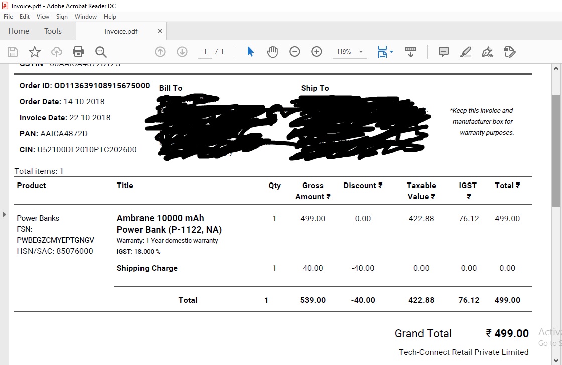 I bought this product from flipkart on 14th October 2018.